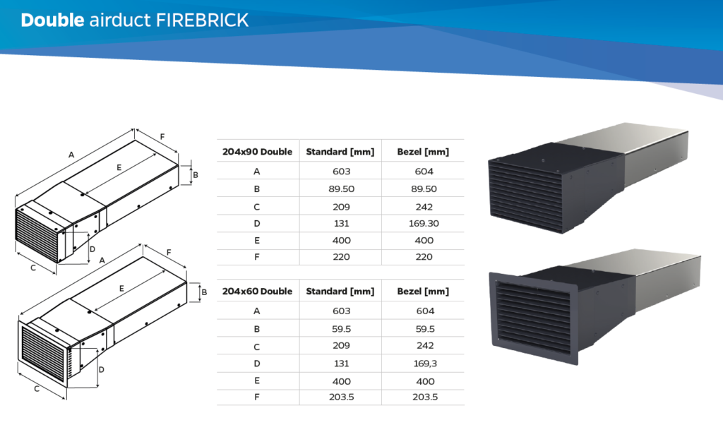 • Available for 204×60 (Single & Double) and 220x90mm (double) Ductwork