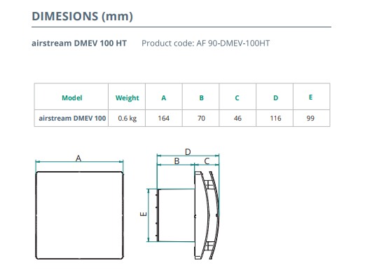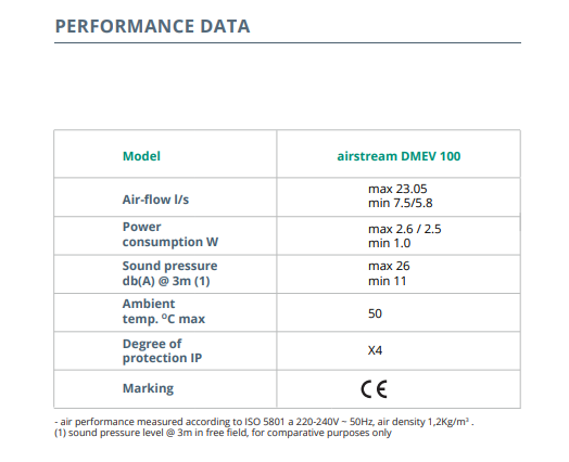 The Brookvent airstream DMEV is a decentralised Mechanical Extract Ventilation (d-MEV) system. Continuous extraction is quieter and more efficient than intermittent fans.Low energy, this continuous extraction process draws out the moist air from wet rooms and bathrooms (and even kitchen and utilities). A single flow unit, this DMEV is perfect for application in toilets, bathrooms, and small to medium spaces or premises.