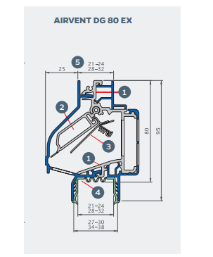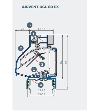 Airvent DG / DGL 80 (EX) is an 80mm glazed in vent with flat or hooded options. When you need a glazed in vent that can offer great performance and can cope with glazing thicknesses up to 47mm this is your choice.