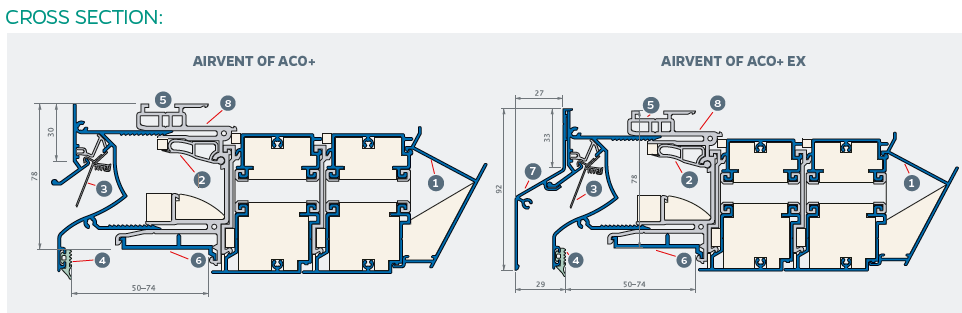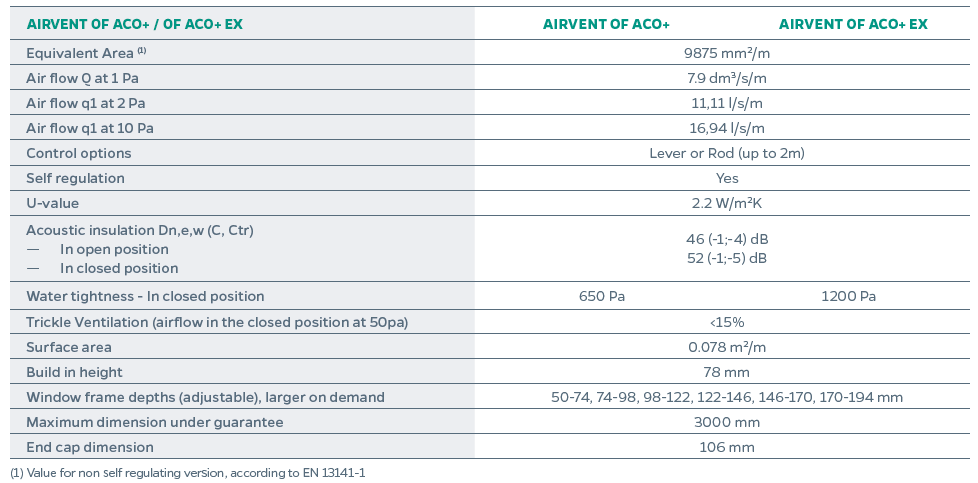 OF ACO+ (EX) provides excellent noise reduction together with a discrete appearance and controlable airflow. When you want a neat solution to noise control this is a great choice. If your building is in particularly exposed location use the airvent OF ACO EX to give enhanced weatherability.